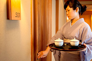 传统的日式旅馆,每间客房都有专门的工作人员,负责照顾宾客从入住到退房的全部事宜,以及客房内使用餐点的全部服务。